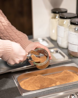 frisch aus der Nussmusmaschine: Mo. Mandelmus, Di. Haselnussmus, Mi. Erdnussmus. Do. Erdnussmus, Fr. Cashewmus, Sa. Nussmus-Mix
